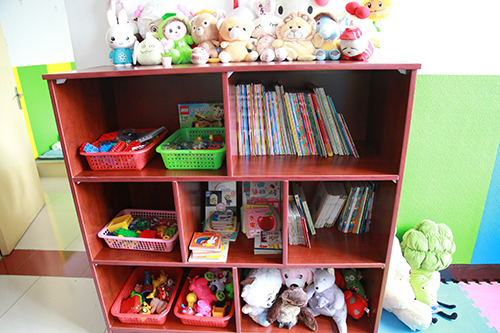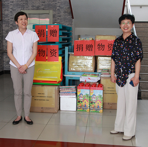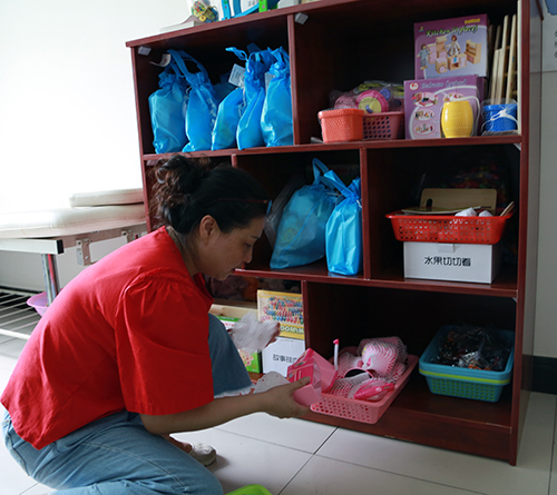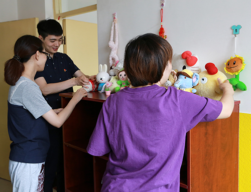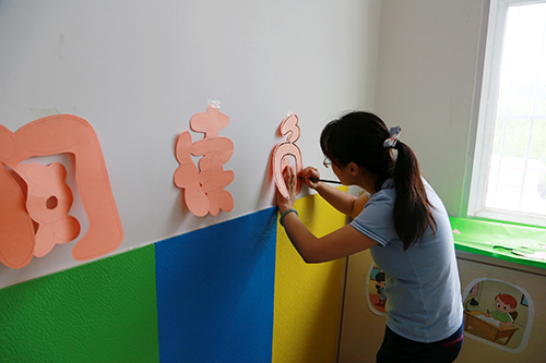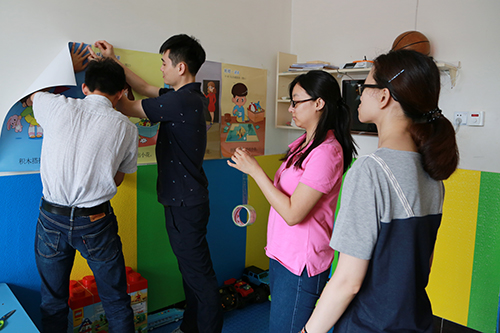 教育培训处、全国工作处和社会合作处的同志按照听力语言康复教育改革要求,对单训室、集体教室布局重新规划,在现有场地小、条件简陋情况下,充分运用捐赠物资,最大限度地改善听障儿童康复环境,满足康复教学需求,合理摆放募集捐赠的儿童桌椅、玩教具、图书、纸笔等物品;和康复中心教师一起创建阅读、美工、建构等活动区角,为听障儿童全面康复提供丰富的教学环境。